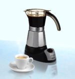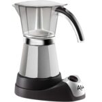 The De’Longhi electric Moka espresso maker has a 3 to 6 inch espresso cup capacity. The Italian Moka espresso process involves just a few simple steps. Fill the boiler with water and the filter with ground coffee. After only a few minutes, the machine will deliver authentic Italian espresso into the container. The two-level safety system shuts the unit off when it is finished brewing and when the body is lifted from the base.