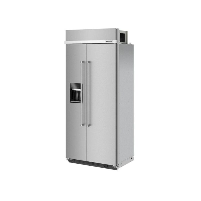Plus, optimal temperatures for ingredients are maintained with the ExtendFresh™ Plus Temperature Management System.Fit System Limited GuaranteeIf new 36 , 42 or 48 built-in refrigerator doesn t fit, you may get up to $300 for professional modifications. Existing cabinet modifications only. Exclusions apply. See terms.*For Full terms and detailsVisit https://www.kitchenaid.com/promotions/promotions.htmlMax CoolLets you use the touch of a button to drop refrigerator temperature to the coldest level, helping to chill groceries, beverages or ingredients for serving. After 24 hours, the temperature will automatically be restored to the previous setting.Max Freezelets you use the touch of a button to drop freezer temperature to coldest level (-8F), so frozen goods can reach optimal temperatures. After 48 hours, the temperature will automatically be restored to the previous setting.PrintShield™ Finishresists smudges and fingerprints. The specialized coating for stainless steel is easy to clean with just water and a soft cloth, so you can spend more time cooking and less time cleaning up.Adjustable Spill-Resistant Glass Shelvesare easy to clean and help prevent messes from spilling over into other parts of the refrigerator. The shelf edges are nano-etched with a finely textured surface that helps contain spills, and lets you use the whole shelf from edge-to-edge.Exterior Ice and Water Dispenserfits glasses and measuring cups, and dispenses filtered water and ice without having to open the refrigerator door.Platinum-Colored Interiorbrings premium style inside the refrigerator to complement the quality ingredients you keep. The sleek platinum-colored interior accents the design details of the refrigerator, and offers a step up from the standard white interior.SatinGlide® Drawersadd a smooth experience to the crisper drawers. The ball bearing rollers and glides allow effortless in-and-out movement even when drawer is fully loaded.Platinum-Colored Interiorbrings premium style inside the refrigerator to complement the quality ingredients you keep. The sleek platinum-colored interior accents the design details of the refrigerator, and offers a step up from the standard white interior.LED Lighting Systemlocated throughout the freezer and refrigerator, makes it easy to find items at a glance. Upon opening, lights illuminate gradually to full brightness for easy visibility.SatinGlide® Drawersadd a smooth experience to the crisper drawers. The ball bearing rollers and glides allow effortless in-and-out movement even when drawer is fully loaded.Touchscreen controlsputs all refrigerator functions at your fingertips. Display has a smooth design and easy-to-use controls, that allow intuitive operation of the refrigerator.FreshFlow™ Air Filterhelps reduce common food odors in the refrigerator and is 15 times more effective than baking soda. It is recommended that you replace this filter every 6 months. Replacing the air filter will require no disassembly or repair experience.Star-K Certified Sabbath Modemeets kosher requirements for use on the Jewish Sabbath and other holidays. Turning on Sabbath Mode disables the refrigerator’s automatic lights and alarm tones, while maintaining cold temperatures for freshness.Measured Water Filldispenses the exact amount of filtered water needed for recipes and can be customized to ounces or liters. Forgo your measuring cups and use the convenient presets, with an option to customize settings for frequently used amounts of your own.Easy Access Binkeeps small ingredients in sight and at hand. Perfect for storing tomato paste, ginger, horseradish and other small items that can easily get lost on shelves.