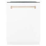 Home Dishwashers ZLINE Autograph Edition 24-Inch 3rd Rack Top Touch Control Dishwasher in White Matte with Gold Handle, 45 dBa (DWMTZ-WM-24-G)